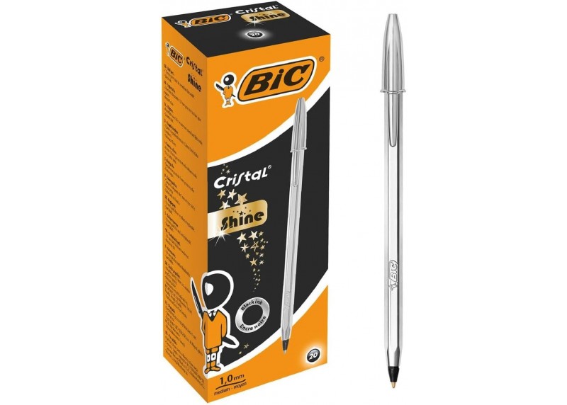 Edición especial del cásico Bic Cristal. Cuerpo dorado para la tinta azul, cuerpo plateado para la tinta negra.