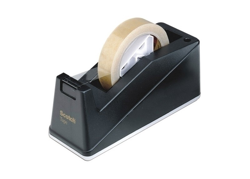 Dispensador de cinta adhesiva robusto para cintas con un núcleo pequeño o grande.
