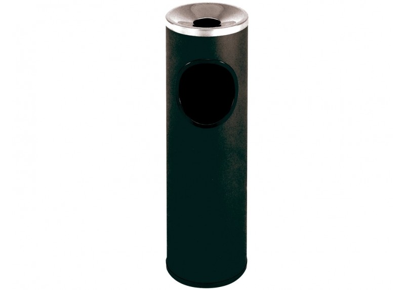 Este cenicero papelera redondo de acabado negro metálico es un accesorio funcional y resistente, especialmente diseñado para la gestión de colillas y pequeños residuos en espacios públicos y comerciales. Su estructura en acero con pintura epoxi asegura una alta durabilidad y facilidad de mantenimiento, mientras que su capacidad de 24 litros y tamaño compacto permiten una colocación versátil en distintos entornos.