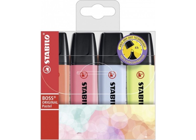 Marcadores en colores pastel con tinta de base acuosa y punta biselada, la cual permite dos anchos de trazo de 2 a 5 mm. Estos tonos suaves también resaltan cosas importantes.